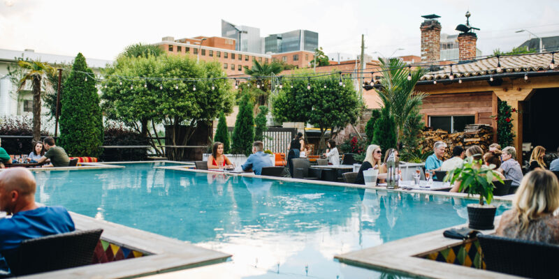 Mulino has long been lauded as one of the best patios in Raleigh. Centered around a gorgeous blue pool, it offers ample seating options amid twinkling lights and greenery, instantly transporting diners to an intimate trattoria straight out of Italy. Of course, a spot right next to the pool is the best seat in the house, but there are also covered outside tables in the case of a rare summer shower. No matter where you sit or what the occasion—whether a date night, gathering with friends, or a spontaneous post-work pit stop—Mulino’s patio is the perfect spot to enjoy golden-hour cocktails, handmade pasta, and unforgettable evenings under the open sky.